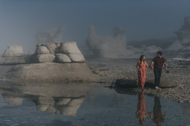 Exchanging vows in the heart of the Mingan Archipelago means uniting in a landscape that feels straight out of a dream. Surrounded by monoliths sculpted by millennia of erosion and lulled by the rhythm of the waves, you can truly feel the power and poetry of nature. Imagine a sunset ceremony, with limestone cliffs as your backdrop and the vastness of the river stretching before you—an enchanting and untamed setting for an unforgettable moment.